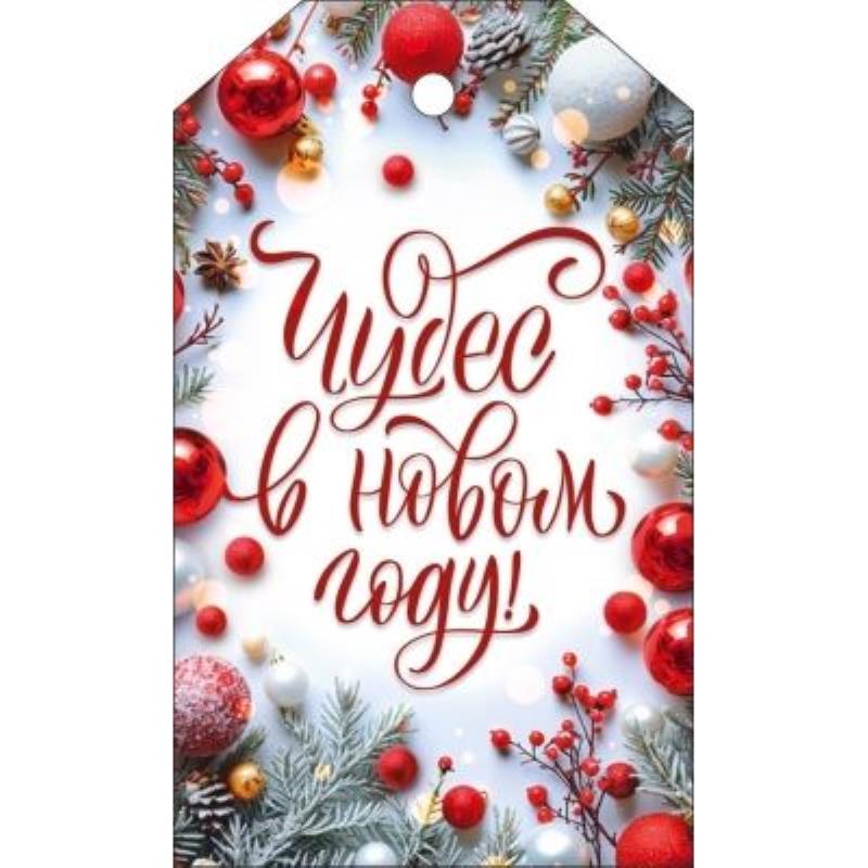Бирка для упаковки картонная 100х60мм 'Чудес в Новом году!'