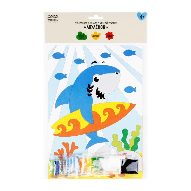 1. Подложка 20*30 см на самоклеящейся основе с напечатанным цветным рисунком «Акулёнок»;