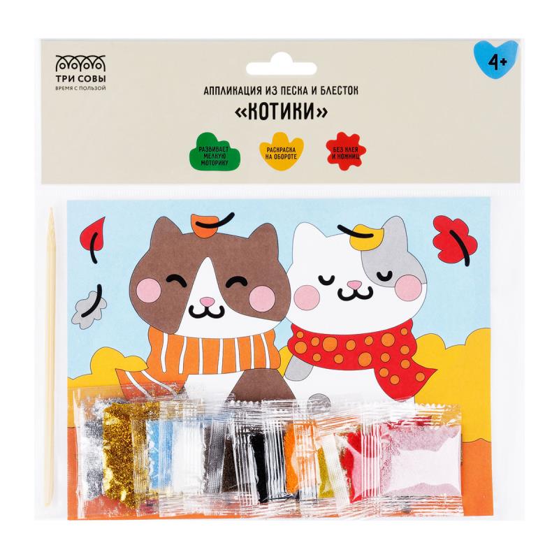 1. Подложка 15*20 см на самоклеящейся основе с напечатанным цветным рисунком «Котики»;