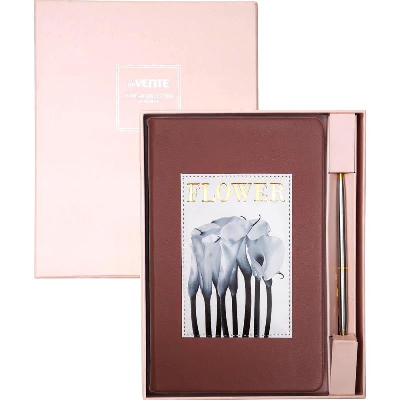Подарочный набор: недатированный ежедневник с твердой обложкой из искусственной кожи с аппликацией, цветной печатью, тиснением фольгой, отстрочкой, закругленными уголками, перфорацией уголков, 2 ляссе