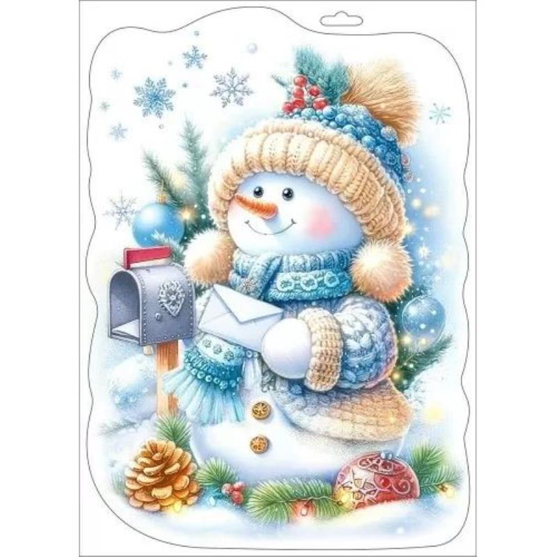 Наклейка новогодняя декоративная 24х33см 'Снеговик с письмом'