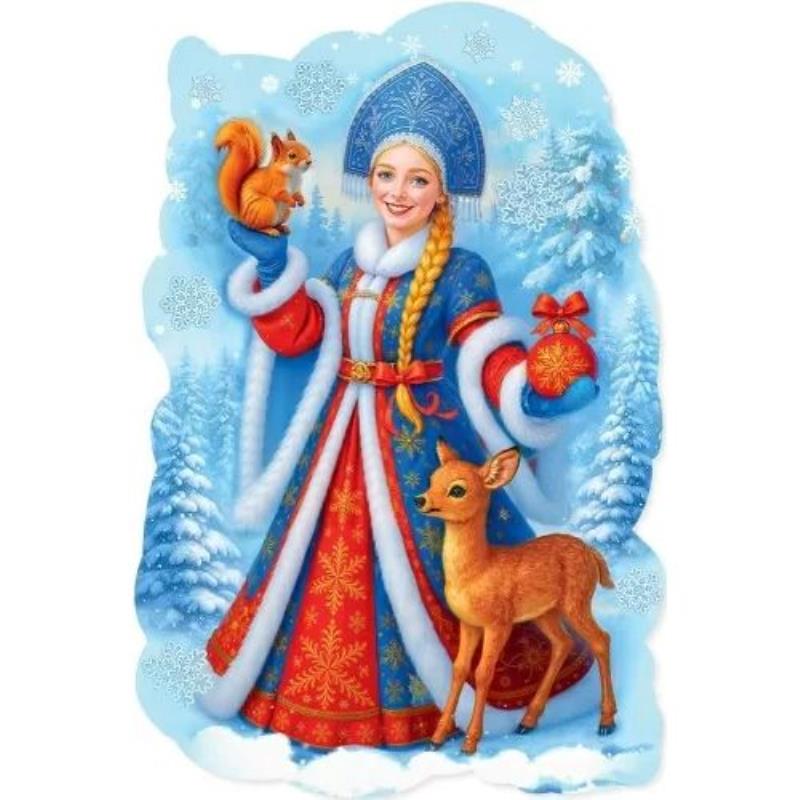 Плакат 'Снегурочка с оленёнком и белочкой' 90х60см