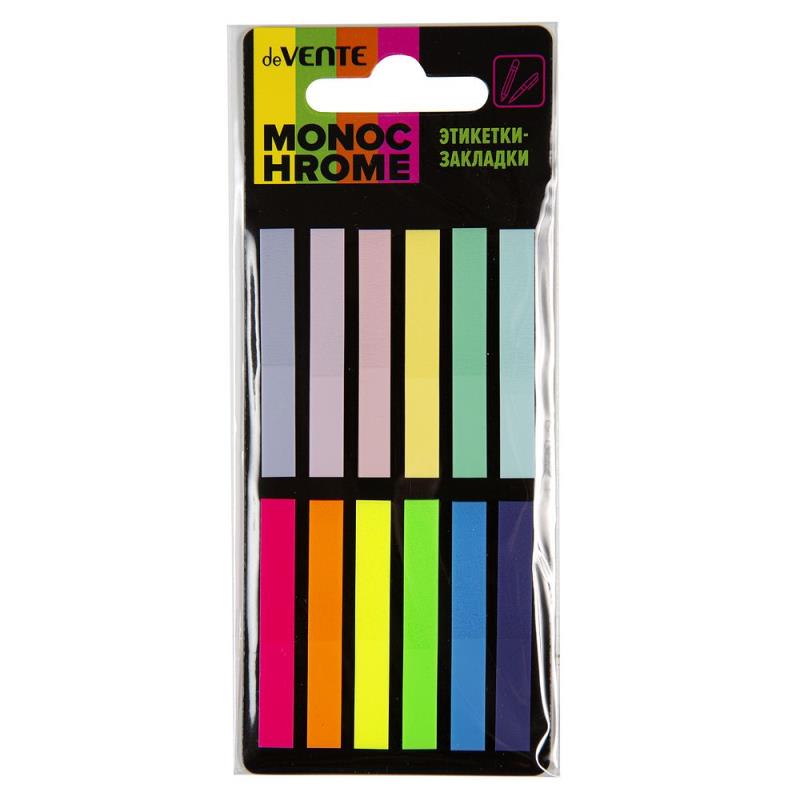 Набор самоклеящихся закладок "deVENTE" пластиковые полупрозрачные, 6х45мм, 6 неоновых + 6 пастельных полосок по 20 листов, в картонном блистере