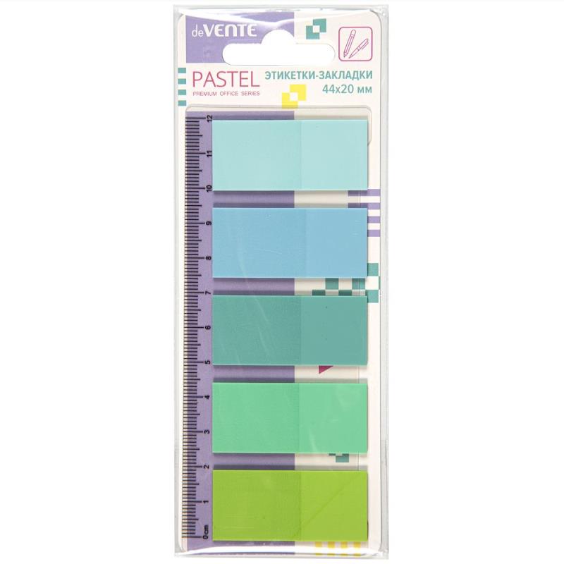 Набор самоклеящихся полупрозрачных пластиковых этикеток-закладок deVENTE на диспенсере-линейке, в блистере.