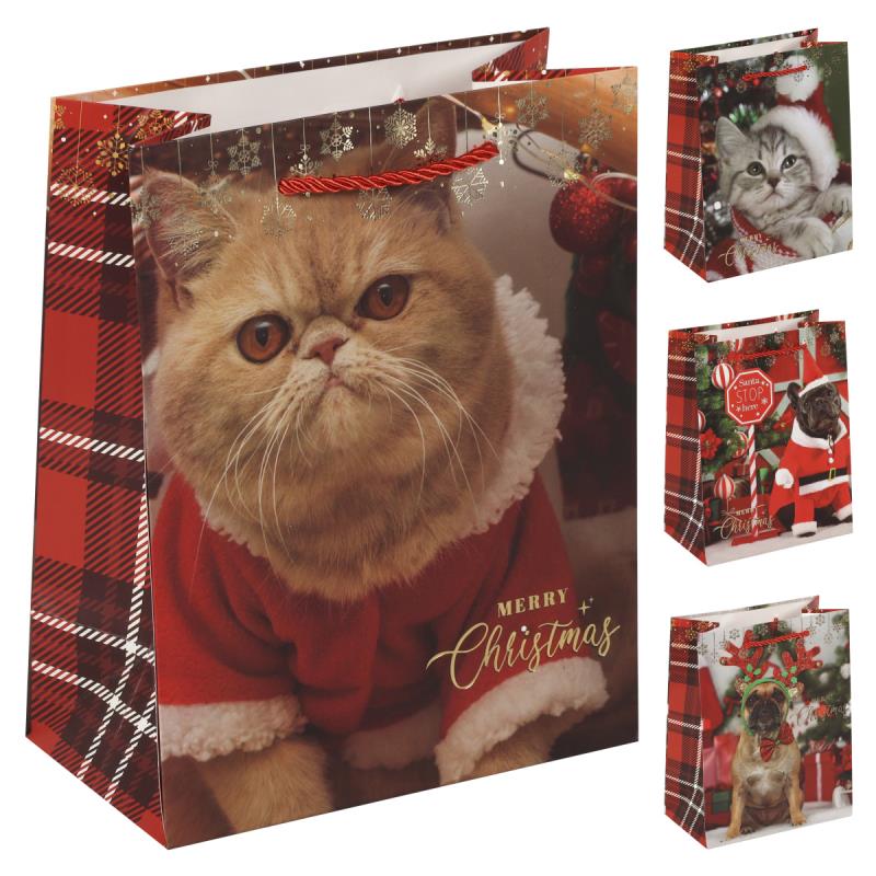 Пакет подарочный новогодний 18х23х10см 'Новогодние животные' 4 дизайна