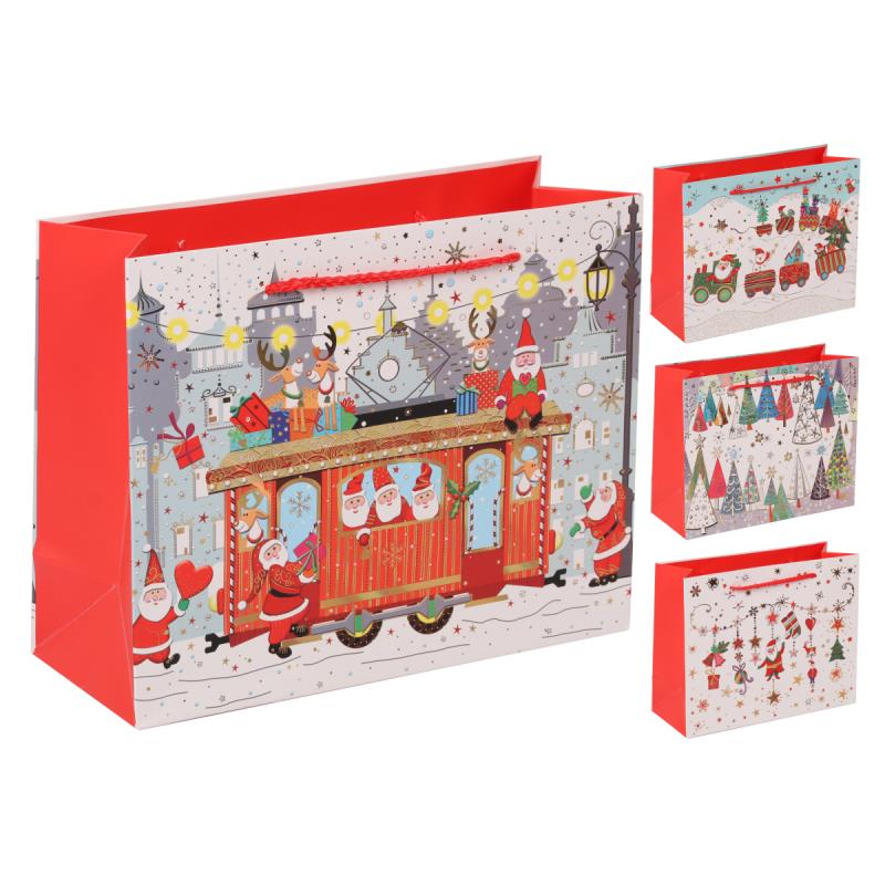 Пакет подарочный новогодний 24х19х10см 'Новогодние забавы' 4 дизайна