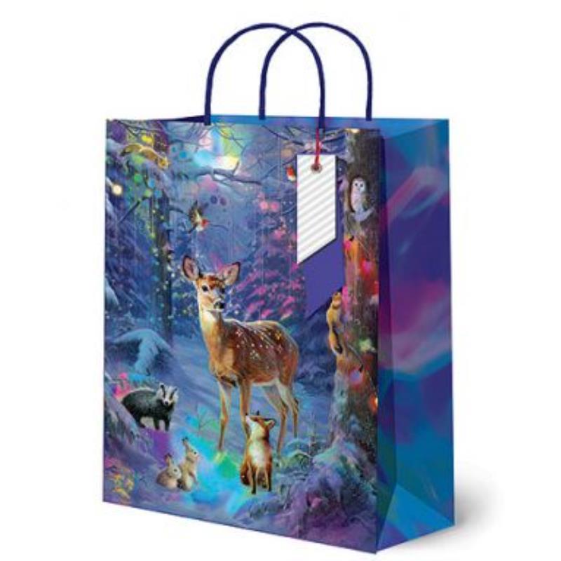 Выборочный УФ-лак, детали-бирки, блёстки в лаке, матовая ламинация, ручки из крученого шпагата, атласная лента.