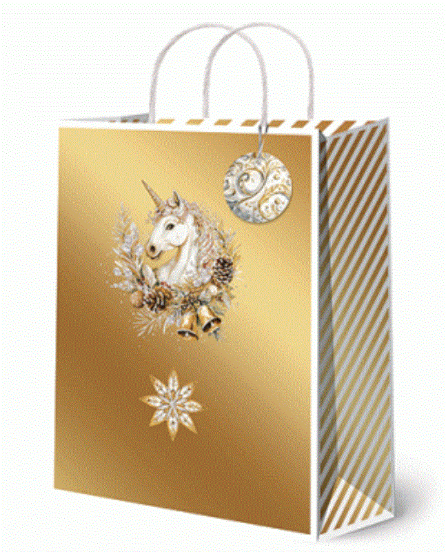 Выборочный УФ-лак, детали-бирки, блёстки в лаке, матовая ламинация, ручки из крученого шпагата, атласная лента.