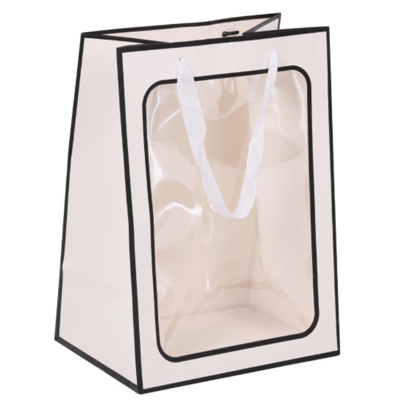 Пакет подарочный 35х25х18см ламинированный с окном белый