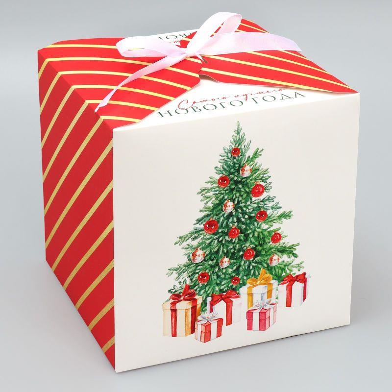 Коробка подарочная новогодняя прямоугольная 18х18х18см складная 'Сказочного Нового года'