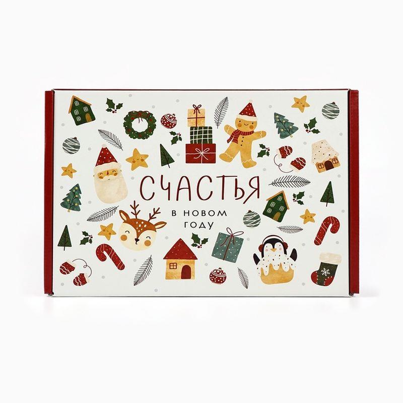 Коробка подарочная новогодняя прямоугольная 30х22х10см складная 'Счастья в новом году'