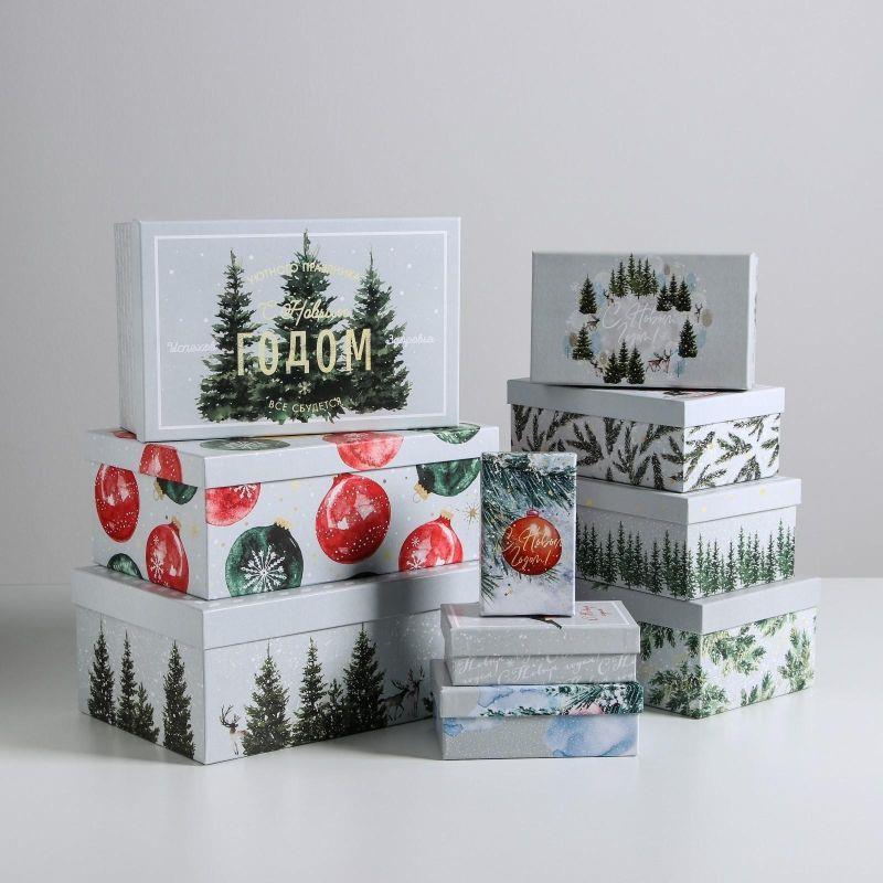 Коробка подарочная новогодняя прямоугольная 12х7х4см 'Акварельный'