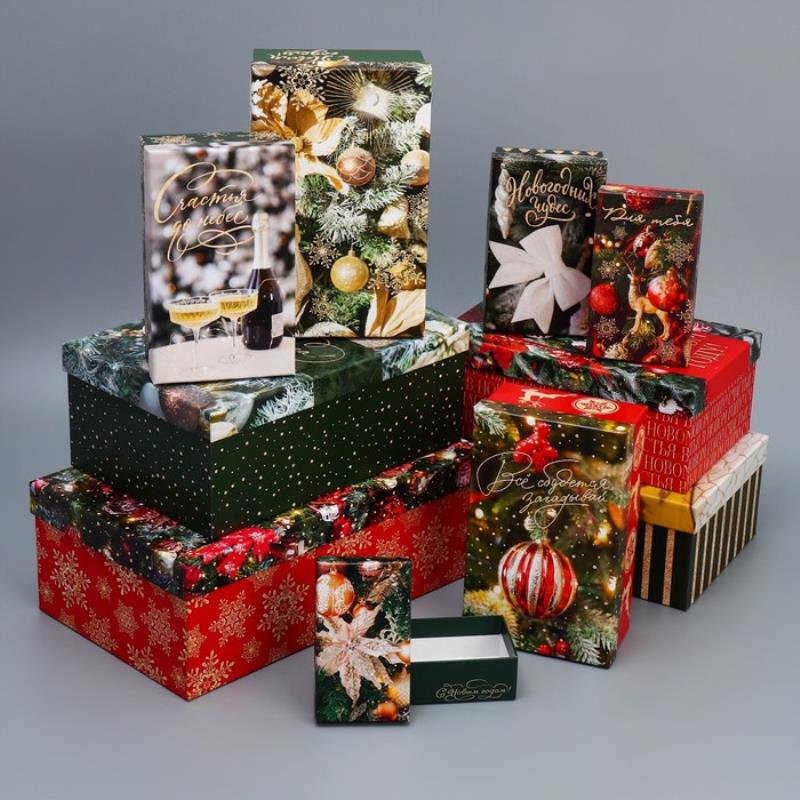 Коробка подарочная новогодняя прямоугольная 14х8х4.5см 'Елочные игрушки'