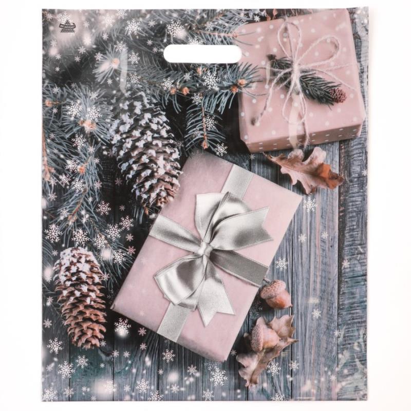 Пакет подарочный новогодний 38х45см полиэтиленовый с вырубной ручкой 'Новогодние подарки'