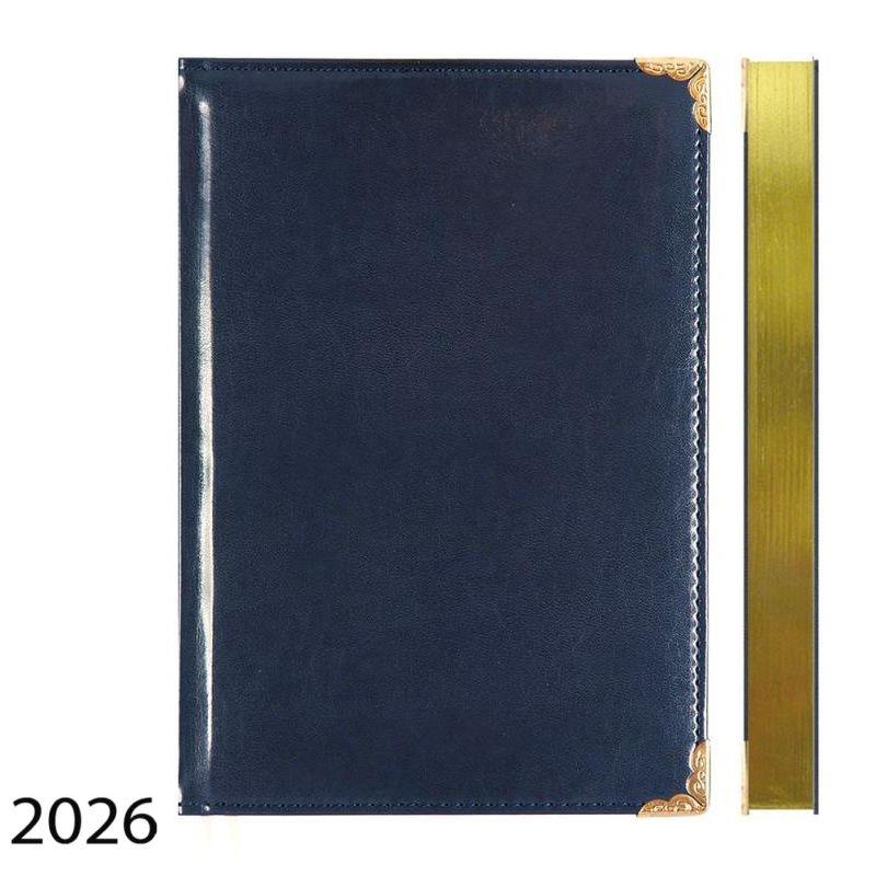 Датированный ежедневник с твердой обложкой из искусственной кожи с поролоном, отстрочкой, металлическими уголками, перфорацией уголков, 2 ляссе, в подарочной коробке.