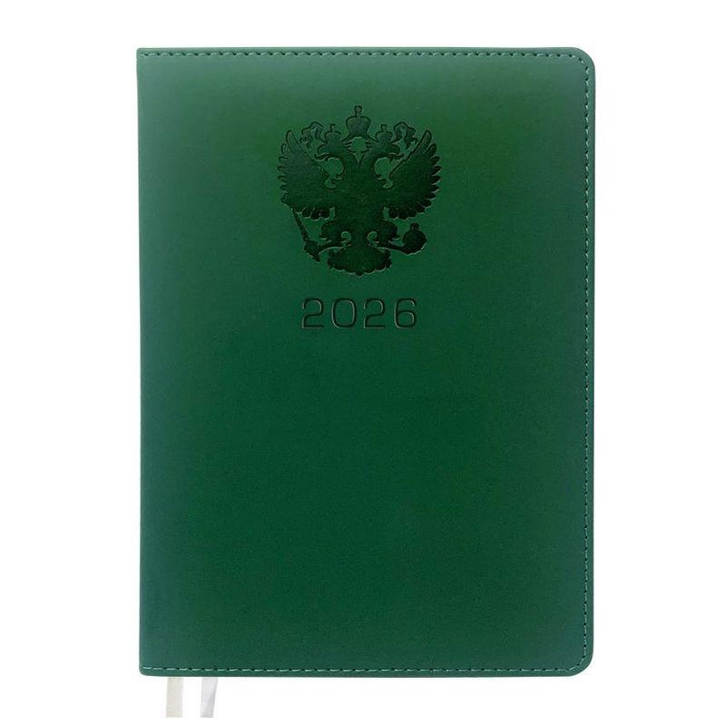 Датированный ежедневник с твердой обложкой из искусственной кожи с поролоном с отстрочкой, закругленными уголками, с перфорацией уголков, 2 ляссе.