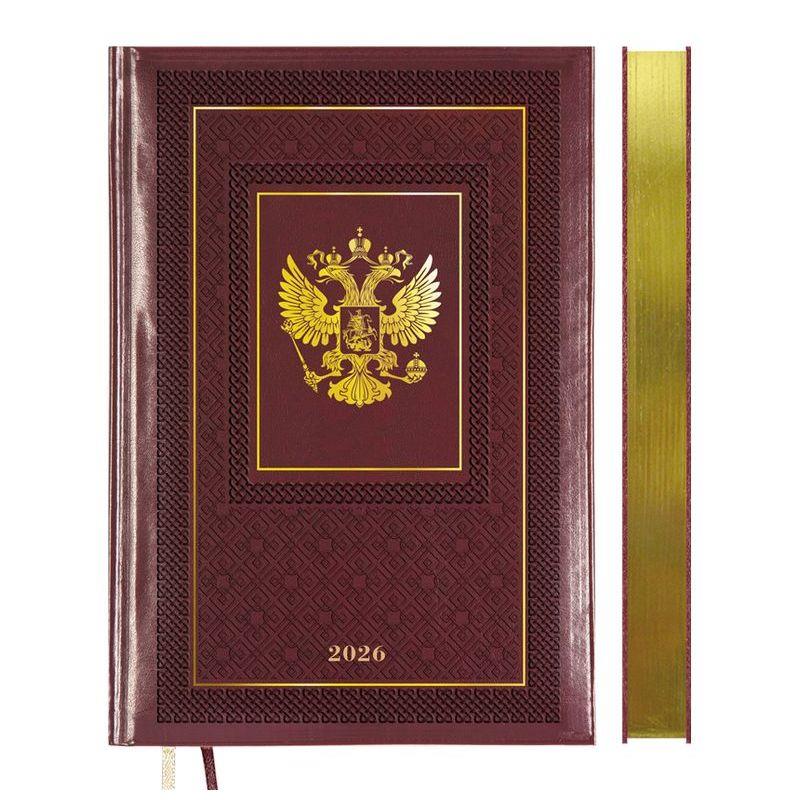 Датированный ежедневник с твердой обложкой из искусственной кожи с поролоном, французским корешоком и золотым срезом.