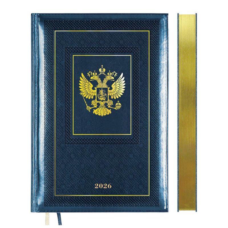 Датированный ежедневник с твердой обложкой из искусственной кожи с поролоном, французским корешоком и золотым срезом.