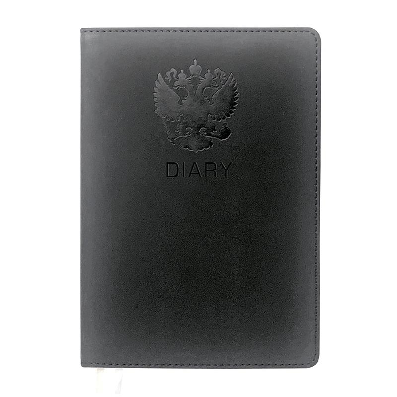 Неатированный ежедневник с твердой обложкой из искусственной кожи с поролоном с отстрочкой, закругленными уголками, с перфорацией уголков, 2 ляссе.