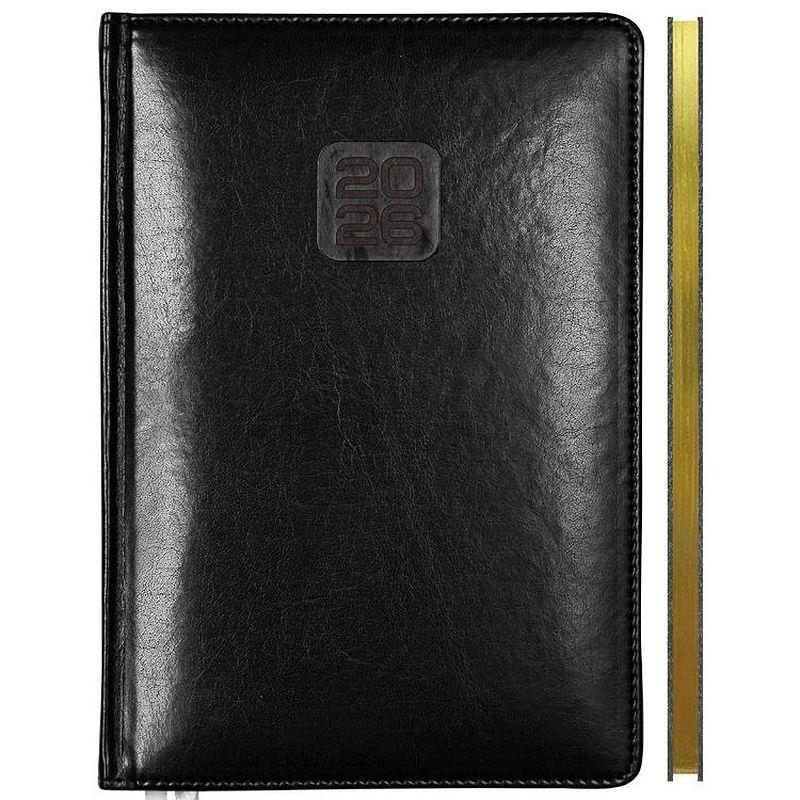 Датированный еженедельник с твердой обложкой из искусственной кожи с поролоном, отстрочкой, закругленными уголками, перфорацией уголков, 2 ляссе.