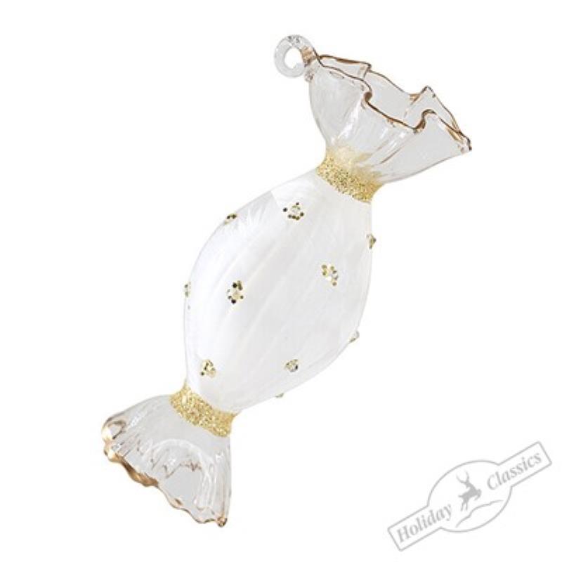 Эта волшебная елочная игрушка в виде стеклянной конфеты привнесет в ваш праздник особую атмосферу. Изготовленная из прозрачного стекла и как будто припорошенная серебристыми снежинками, она мерцает и переливается, отражая огоньки гирлянд и создавая сказочное настроение. Эта игрушка станет ярким акцентом на елке и любимым элементом новогоднего декора, придавая каждому взгляду чуточку сказки и магии.
