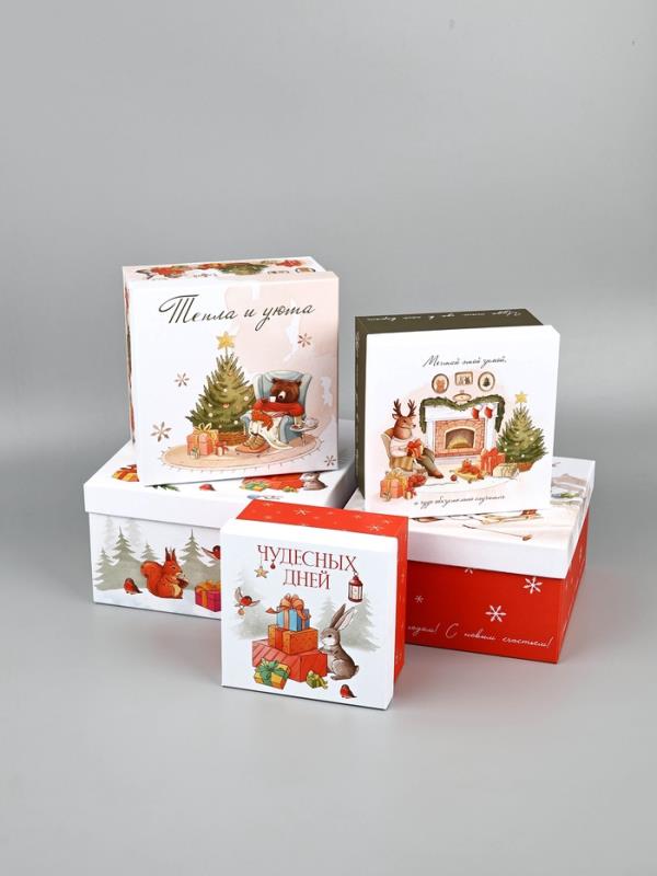 Коробка подарочная новогодняя квадратная 20х20х11см 'Уютный Новый год'