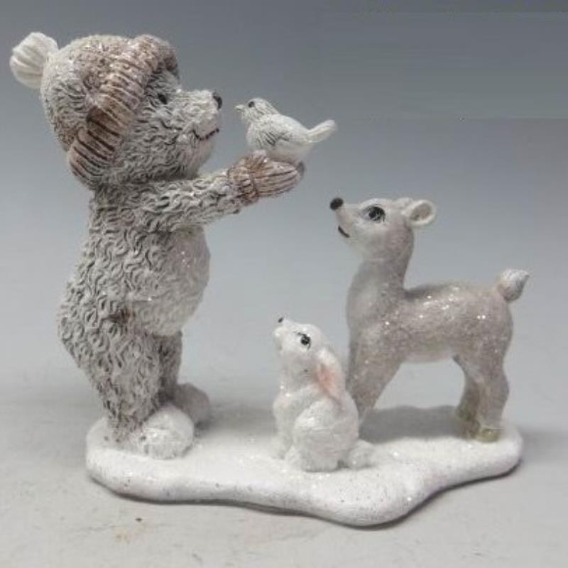 Сувенир новогодний  9.5см 'Медвежонок с лесными друзьями' полистоун