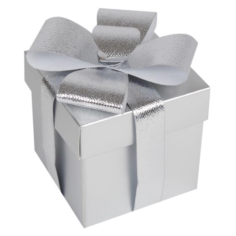 Коробка подарочная квадратная 10х10х10см 'Бант' складная серебро