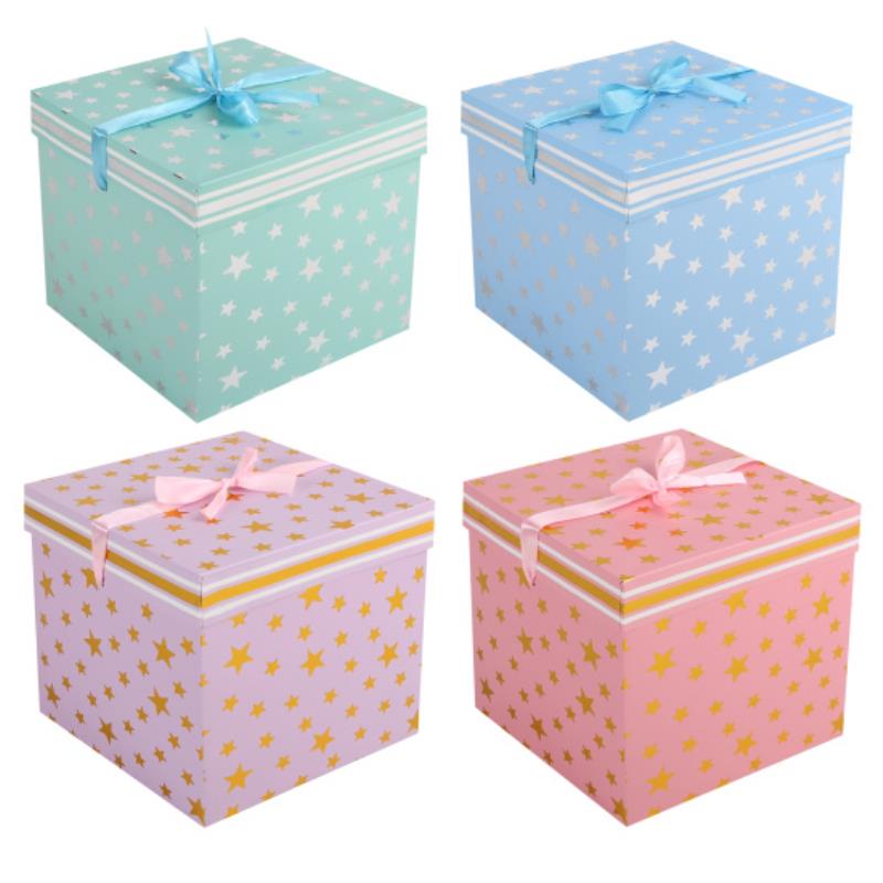 Коробка подарочная квадратная 22х22х22см 'Звезды' складная ассорти