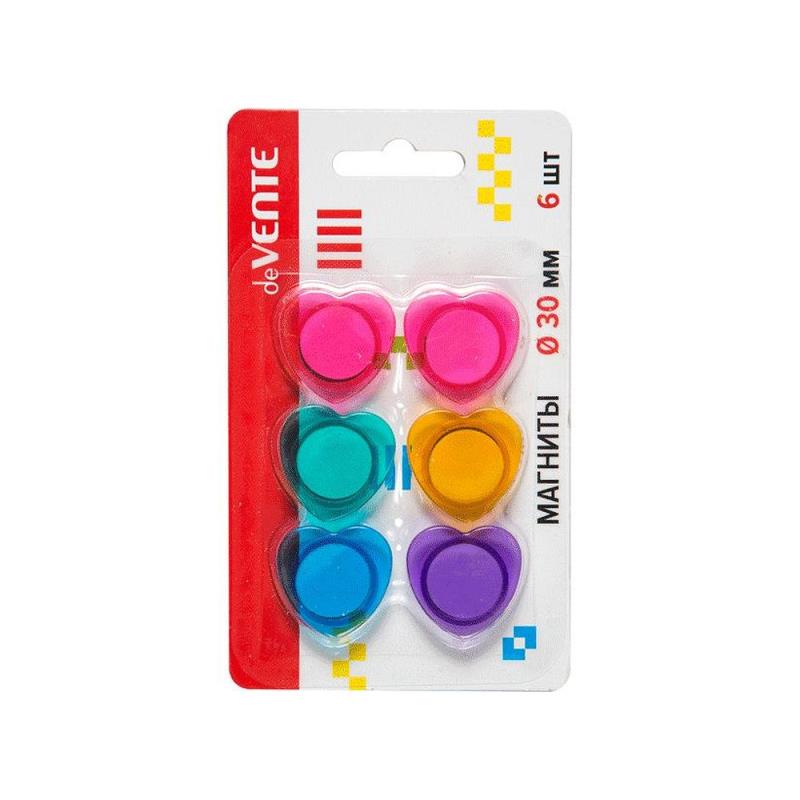 Магнитный держатель фигурный  30х30мм deVENTE 'Сердце' 6шт полупрозрачный цвета ассорти