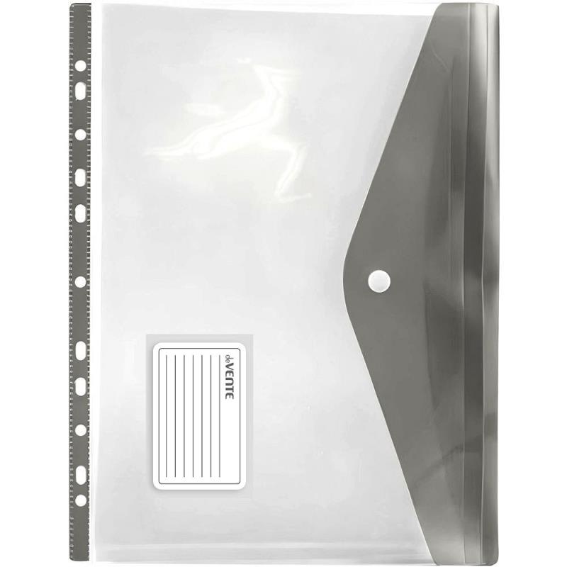 Прозрачная мультифора с расширением и вертикальным дымчатым клапаном на кнопке прекрасно подходит для хранения объемных печатных материалов.