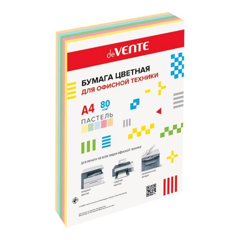 Набор офсетной бумаги Пастельной гаммы из 5 цветов по 100 листов. Бумага плотостью: 80г/м²