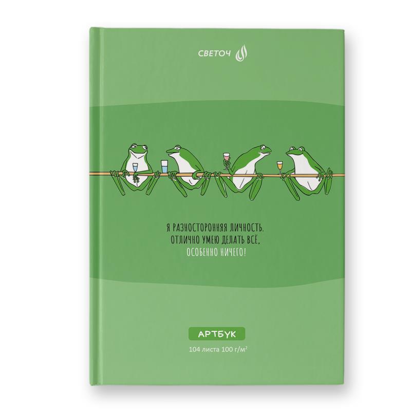 Артбук 104 листа в удобном формате А5 - прекрасный помощник для творческих и деловых людей. Идеально подходит для эскизов, набросков, скетчинга и различных записей. Обложка твердая, дизайн изделия дополнен спецэффектом в виде матовой ламинации и выборочного лака. Внутренний блок изготовлен из качественной офсетная бумаги плотностью 100 г/кв. м, 100% белизны.