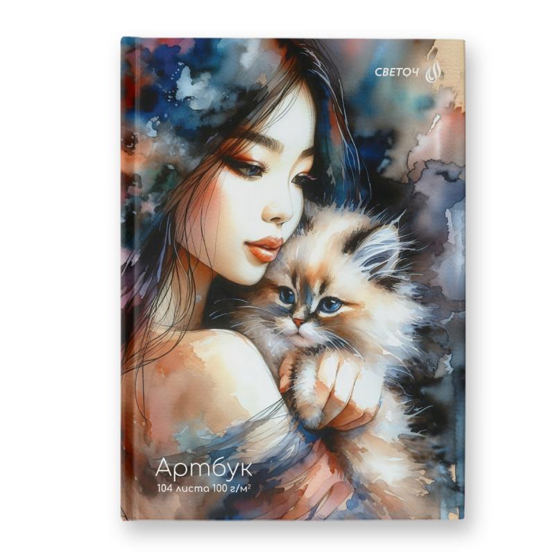 Артбук 104 листа в удобном формате А5 - прекрасный помощник для творческих и деловых людей. Идеально подходит для эскизов, набросков, скетчинга и различных записей. Обложка твердая, дизайн изделия дополнен спецэффектом в виде глянцевой ламинации. Внутренний блок изготовлен из качественной офсетная бумаги плотностью 100 г/кв. м, 100% белизны.