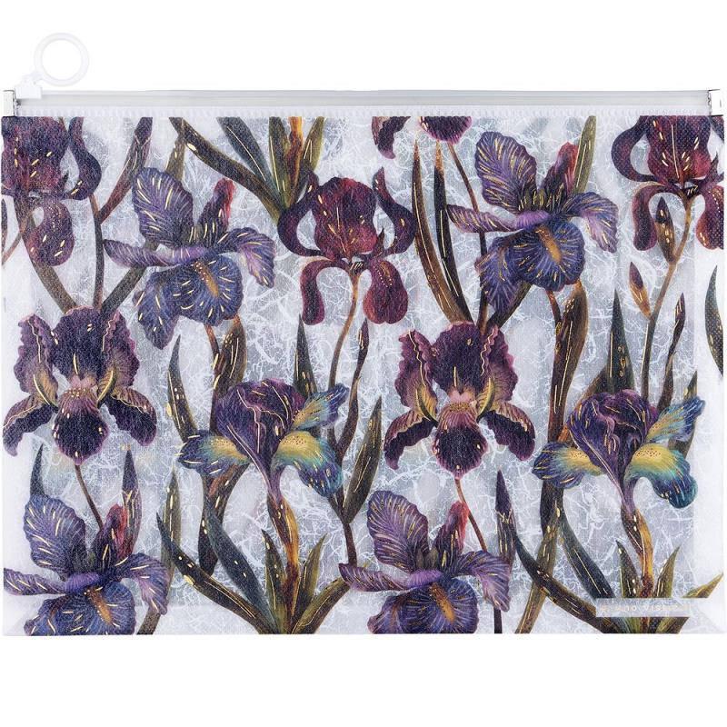 Папка-конверт на молнии A4 BrunoVisconti® с расширением до 200л пластиковая 180мкм 'Flora' Ирисы