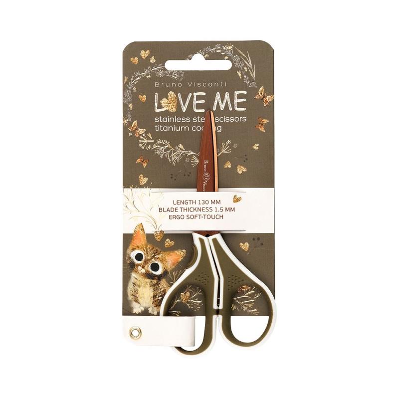 Ножницы 13см BrunoVisconti® 'Love me' Милый котик титановое 'Золотое' покрытие с резиновыми вставками Soft Touch в блистере