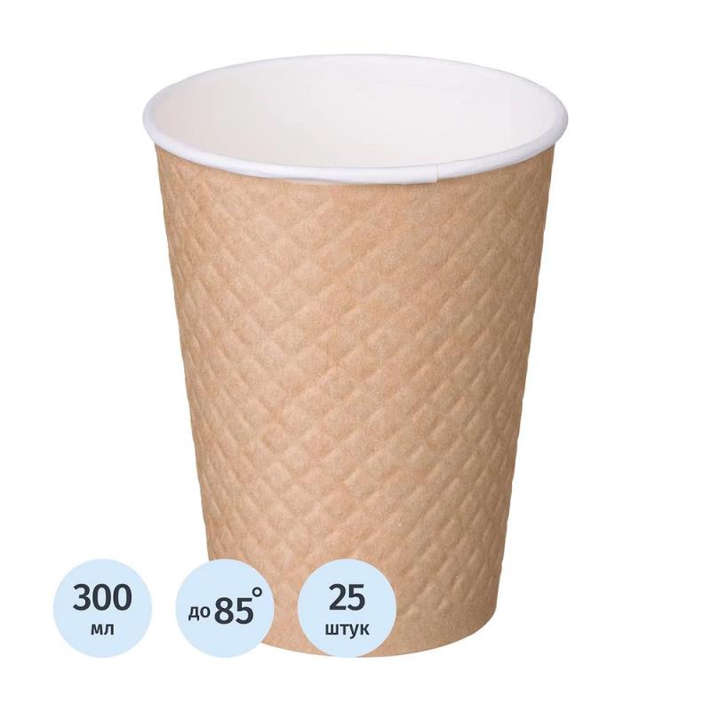 Благодаря воздушной прослойке между слоями бумаги температура напитка сохраняется дольше, а стакан комфортно держать в руках.