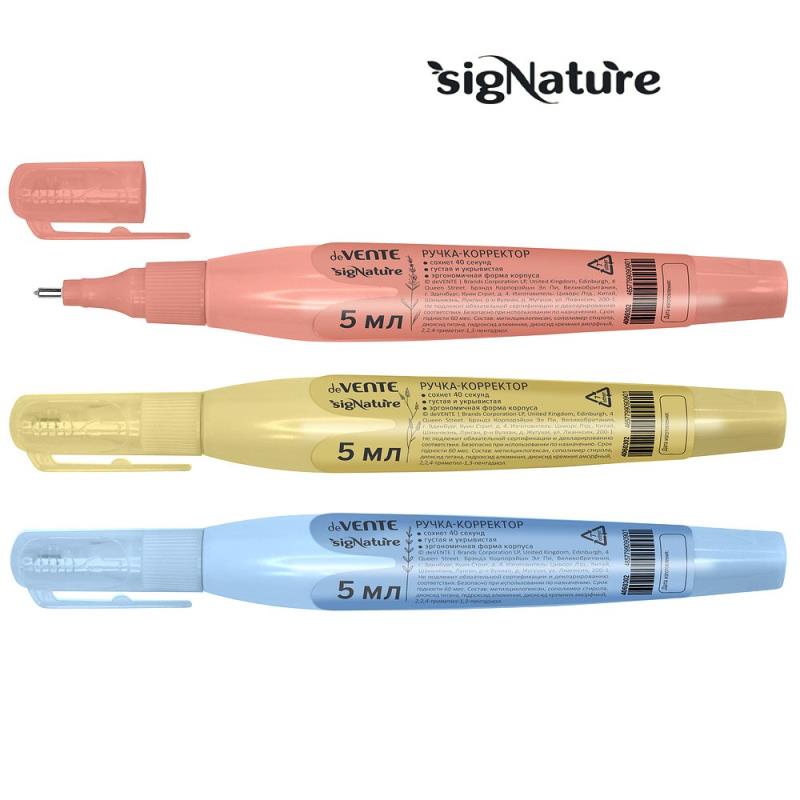Корректирующая ручка deVENTE 'sigNATURE' быстросохнущая c трубчатой системой подачи корректирующей жидкости и эргономичным корпусом.