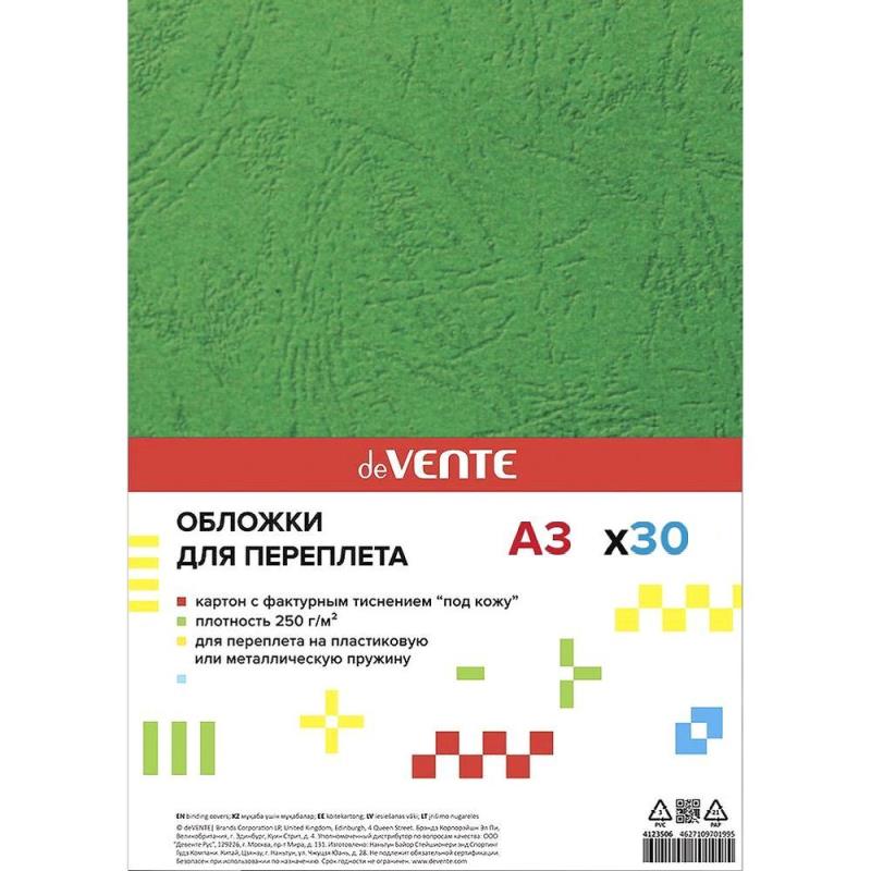 Обложка картонная A3  250г deVENTE 'Кожа' зеленая  30шт