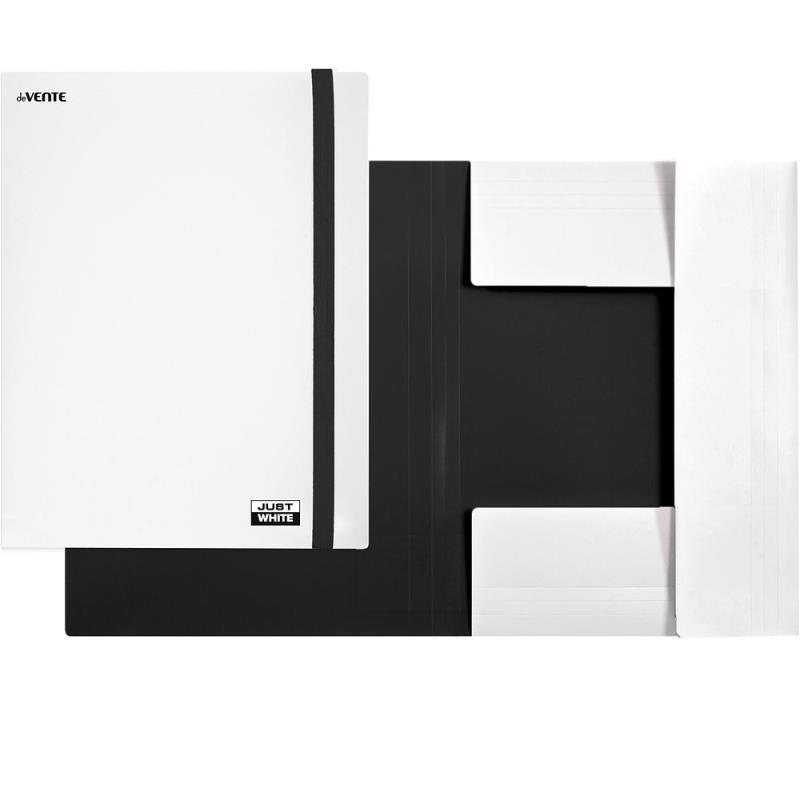 Пластиковая папка серии 'Just White' с 3 клапанами, широкой вертикальной резиновой застежкой и фактурой 'soft-touch'.