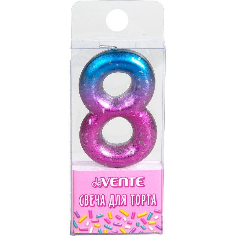 Свеча-цифра для торта deVENTE 'Degrade' с двойным металлическим цветом и напылением с серебряными точками.