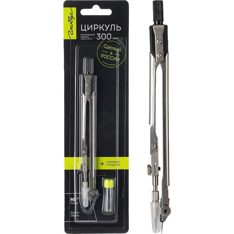 Циркуль металлический Глобус 19см +грифели 2.0мм в блистере