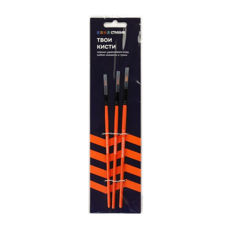 Набор синтетических кистей «Стихия» - это 3 круглые синтетические кисти с металлической обоймой и ручкой выполненной из дерева. Отличное качество ворса, прочная обойма и износостойкое покрытие делают кисти «Стихия» комфортными и долговечными в использовании.