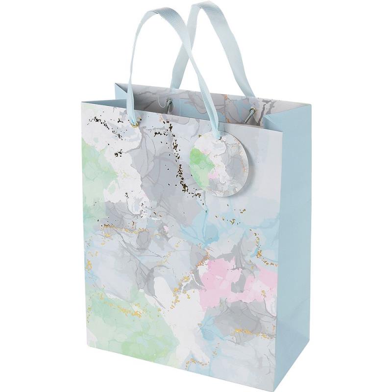 Высококачественный бумажный пакет для подарков с матовым Soft touch-покрытием, тиснением золотой фольгой и ручками из шелковой ленты.