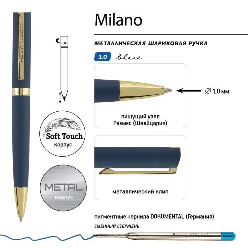 Как и все подарочные ручки BrunoVisconti®, 'Milano' - обладательница стержня с пишущим узлом от швейцарского производителя Premec и перманентными чернилами немецкого производителя Dokumental.