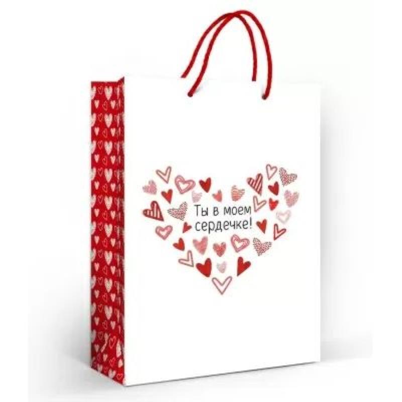 Пакет подарочный 22х31см ламинированный 'Ты в моем сердечке'