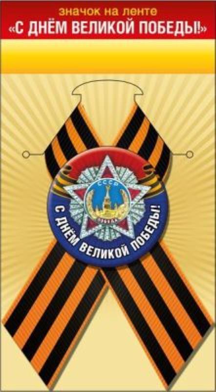 Значок 9 Мая. 'С Днем Великой Победы!' с лентой