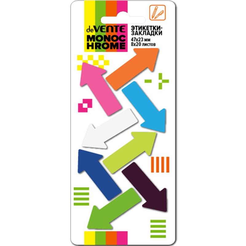 Набор пластиковых самоклеящихся закладок deVENTE в форме стрелки в картонном блистере.