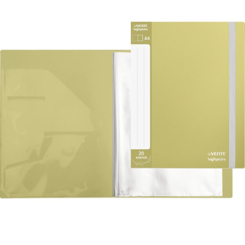 Папка A4  20 карманов deVENTE 'sigNATURE' с дополнительным внутренним карманом на резиновой застежке Оливковая
