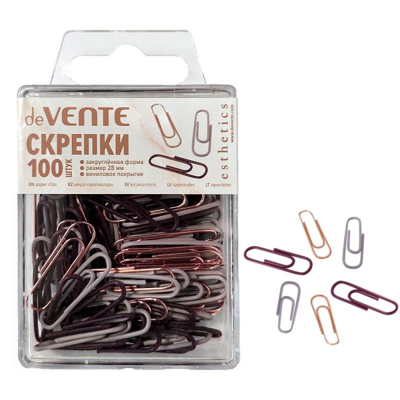 Овальные металлические скрепки с пластиковым покрытием deVENTE 'Esthetics' 3 цвета ассорти бургунди, лавандово-пепельный и розовое золото.